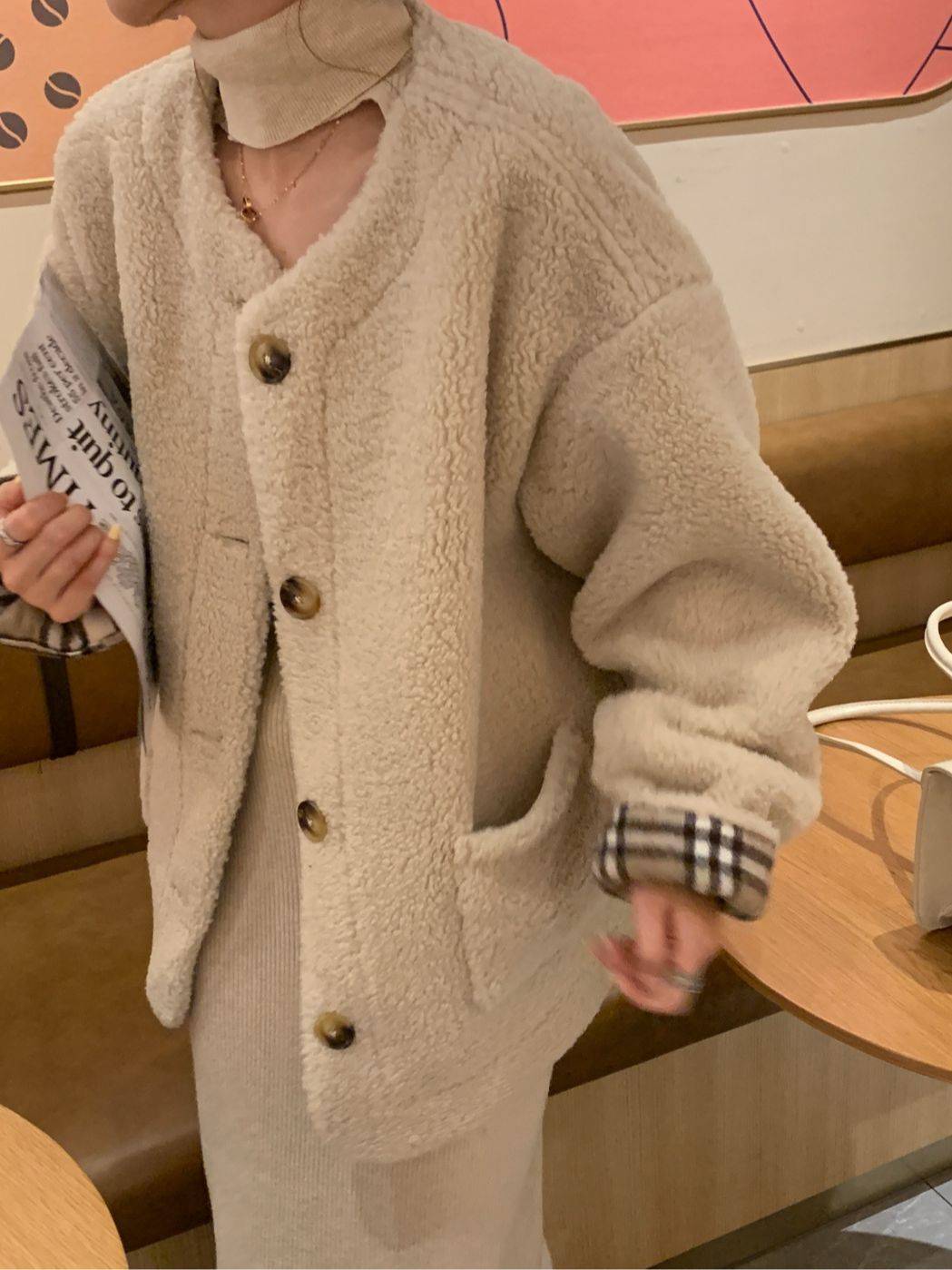 GAGD冬款上新复古气质氛围感加厚仿皮毛一体羊羔毛外套中长款外套