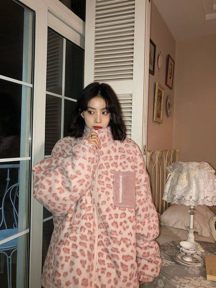 粉色羊羔绒棉衣外套女2020冬季新款宽松加厚潮欧美豹纹 298.00 已售:0件