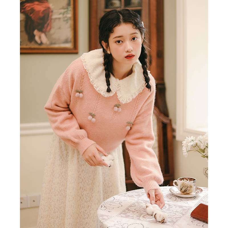 日系毛衣套头樱桃钩花圆领针织外穿甜美温柔慵懒风秋冬宽松 188.00 已售:0件
