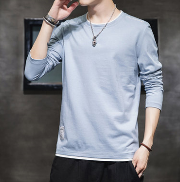 男装春季新款纯色休闲卫衣男 圆领套头长袖t恤男学生上衣