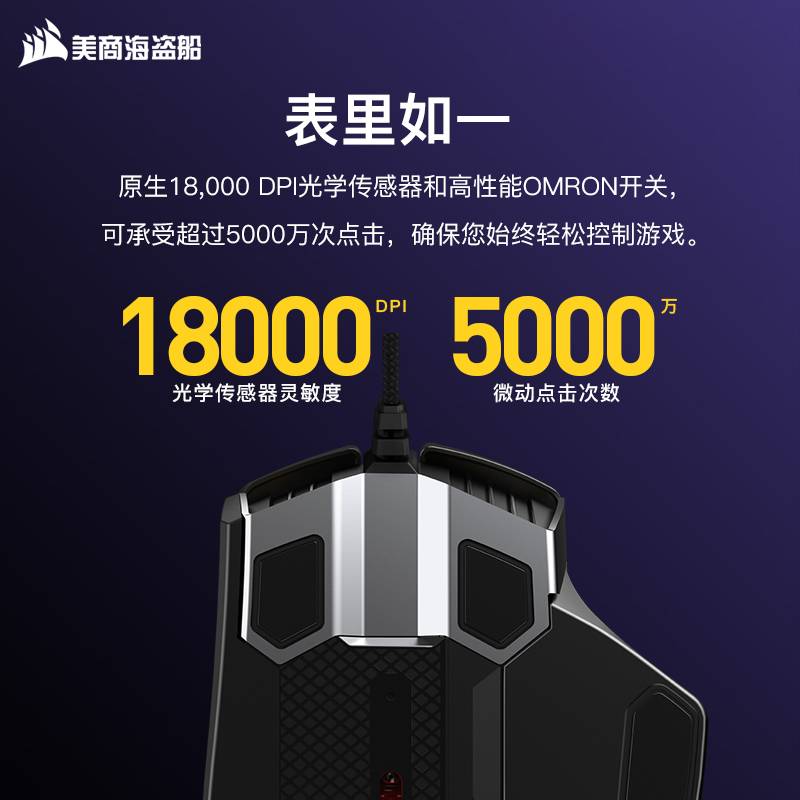 美商海盗船阔剑PRO电竞幻彩游戏海盗船有线鼠标电脑台式机压枪宏