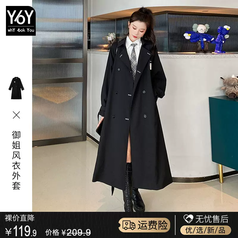 2023年新款小众设计秋冬季中长款高级感黑色风衣外套女小个子大衣