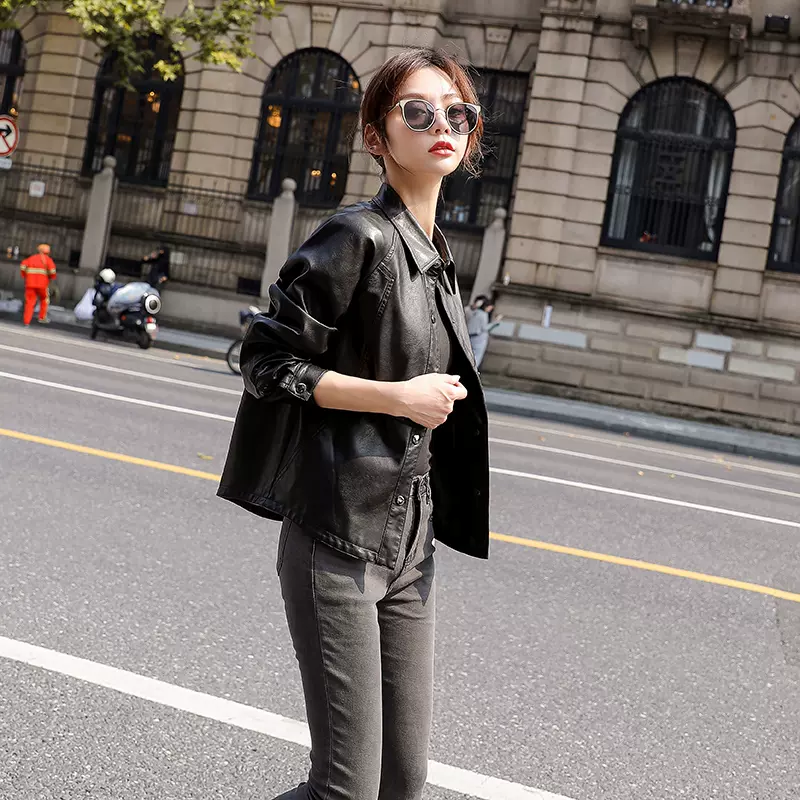 短款皮衣外套女春秋2023年新款海宁机车服上衣黑色小个子pu皮夹克