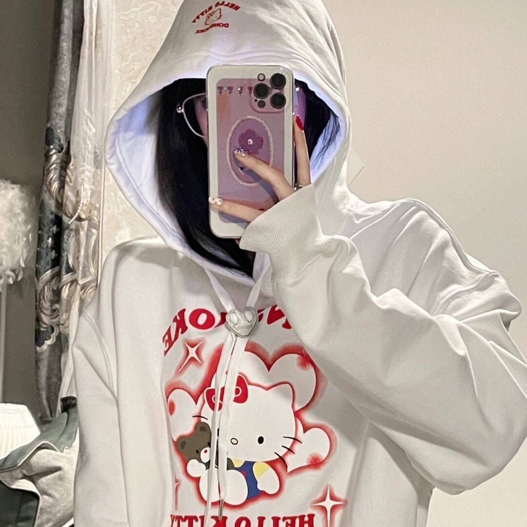 连帽卫衣女棉2022春秋薄款韩版宽松ins潮牌凯蒂猫vibe风帽衫外套