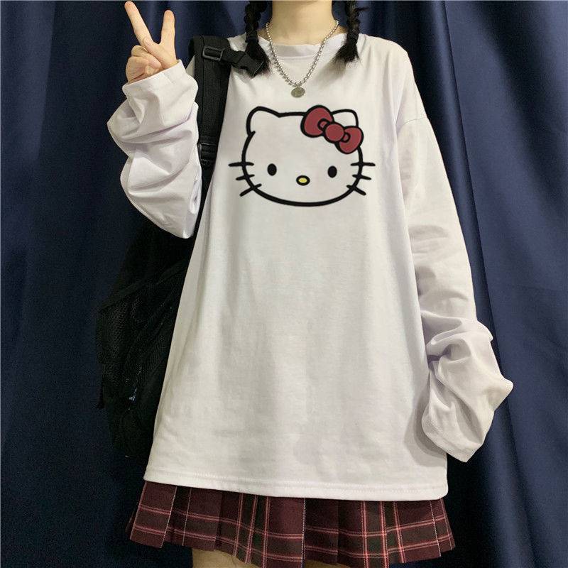 卡通KT猫长袖t恤女装学生韩版宽松潮ins可爱秋冬季上衣