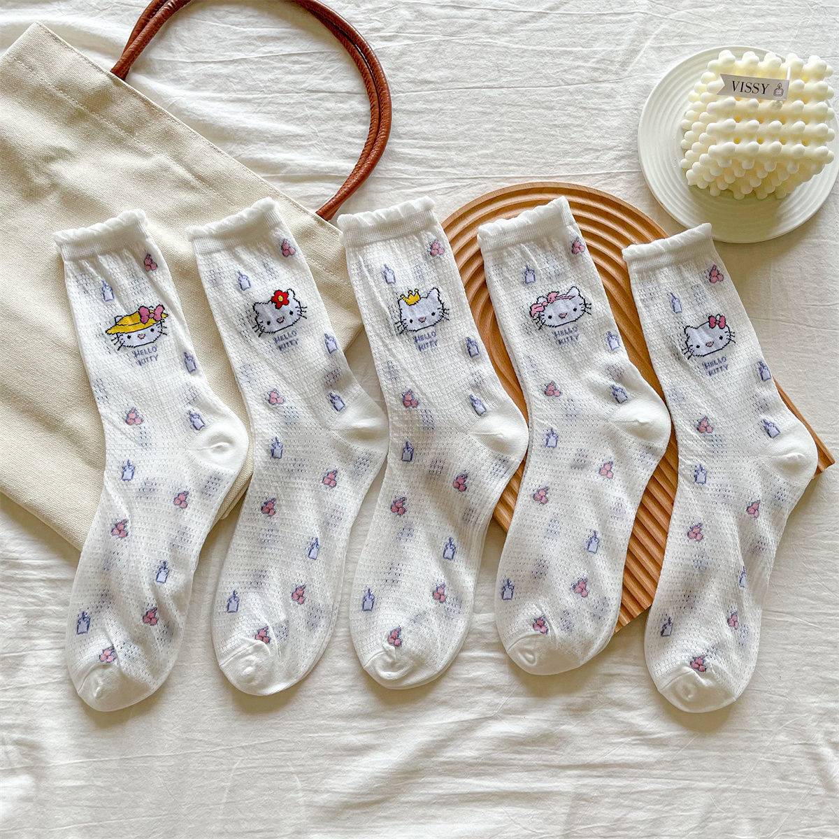 夏季日系卡通可爱袜子女中筒袜jk百搭萝莉软妹泡泡KT猫薄款堆堆袜