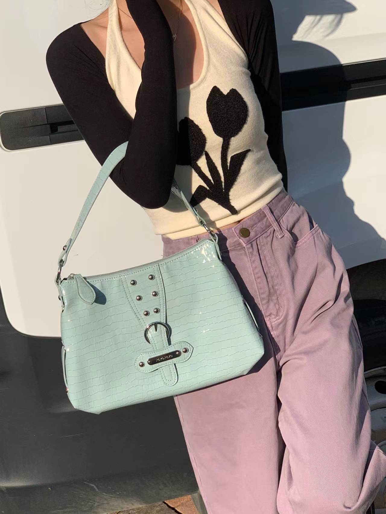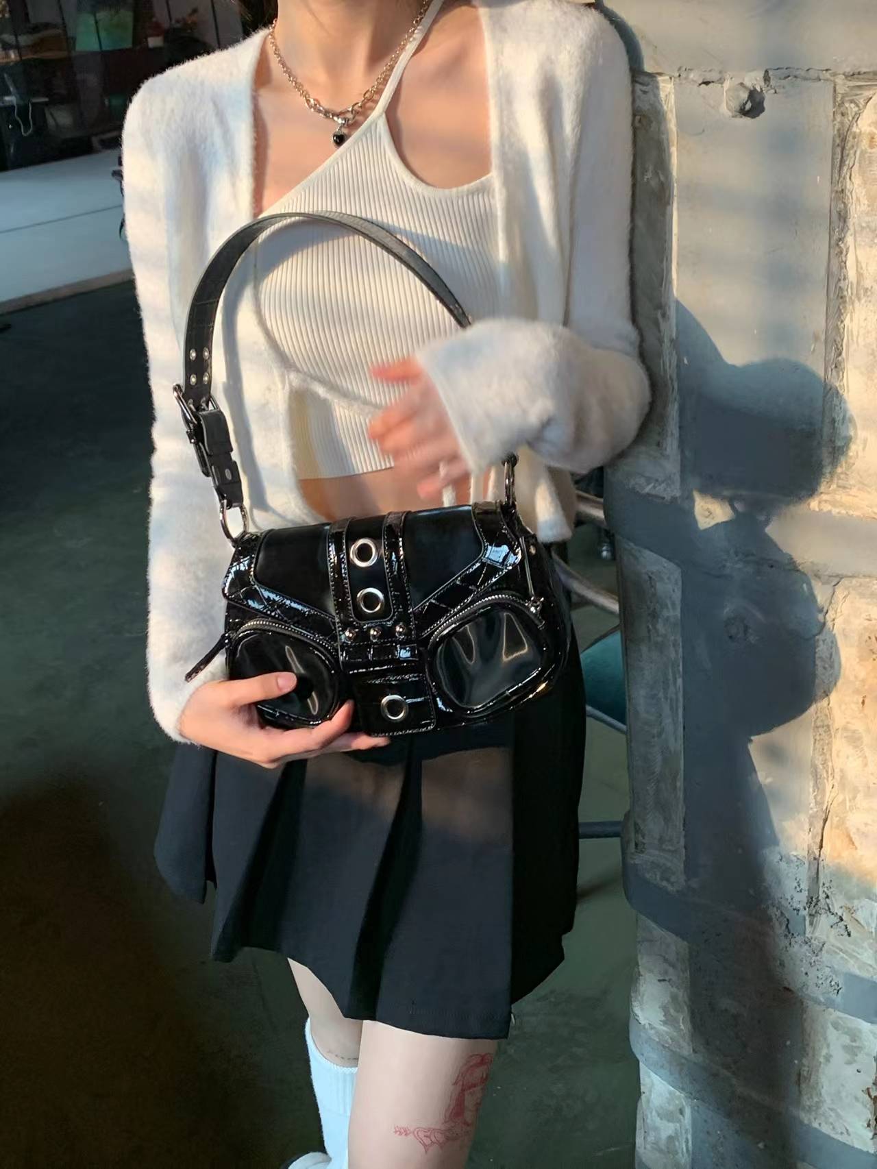 happy day原创辣妹镭射机车包双口袋腋下包斜挎包