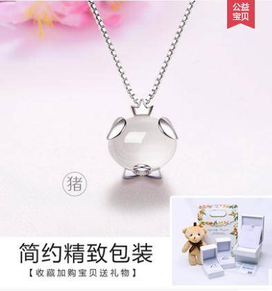 s925银十二生肖项链女锁骨简约韩版网红小猪吊坠纯银饰品生日礼物
