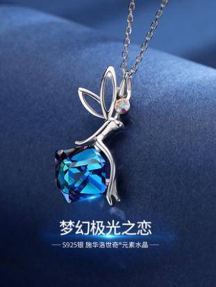 采用施华洛世奇元素水晶项链女纯银锁骨链潮网红吊坠时尚送女友