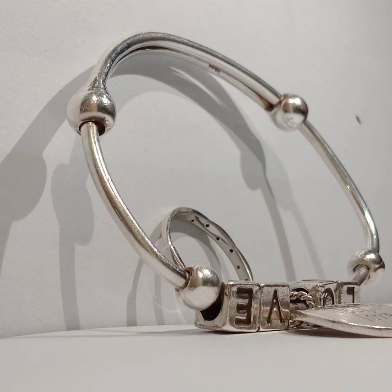 遇见三生三世银手镯女S999足银抖音直播文字线纯银竹节款镯子