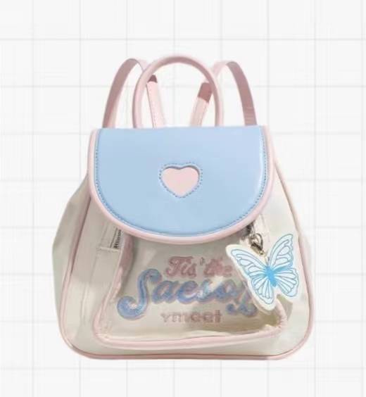 蓝色韩版可爱小众双肩包包女2025新款大容量双肩包包