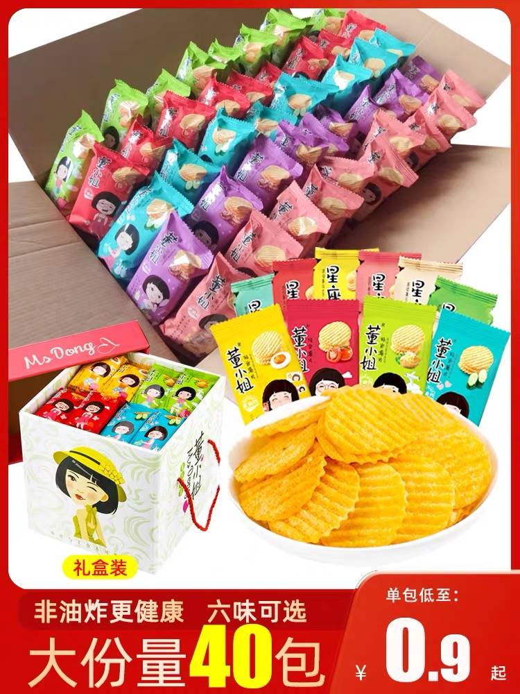 董小姐薯片零食小吃非油炸休闲食品小包装礼盒儿童大礼包整箱批发