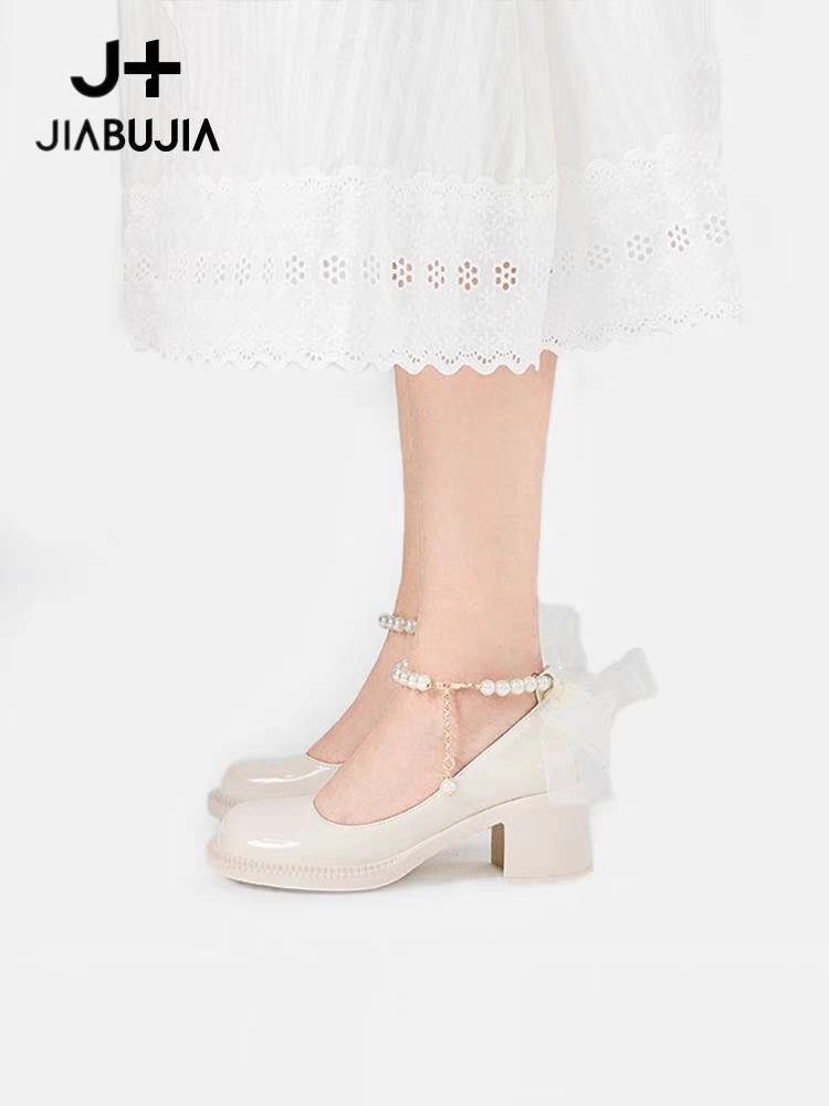 贾不假高跟女2023年新款春季小香风粗跟法式玛丽珍鞋子春秋小皮鞋
