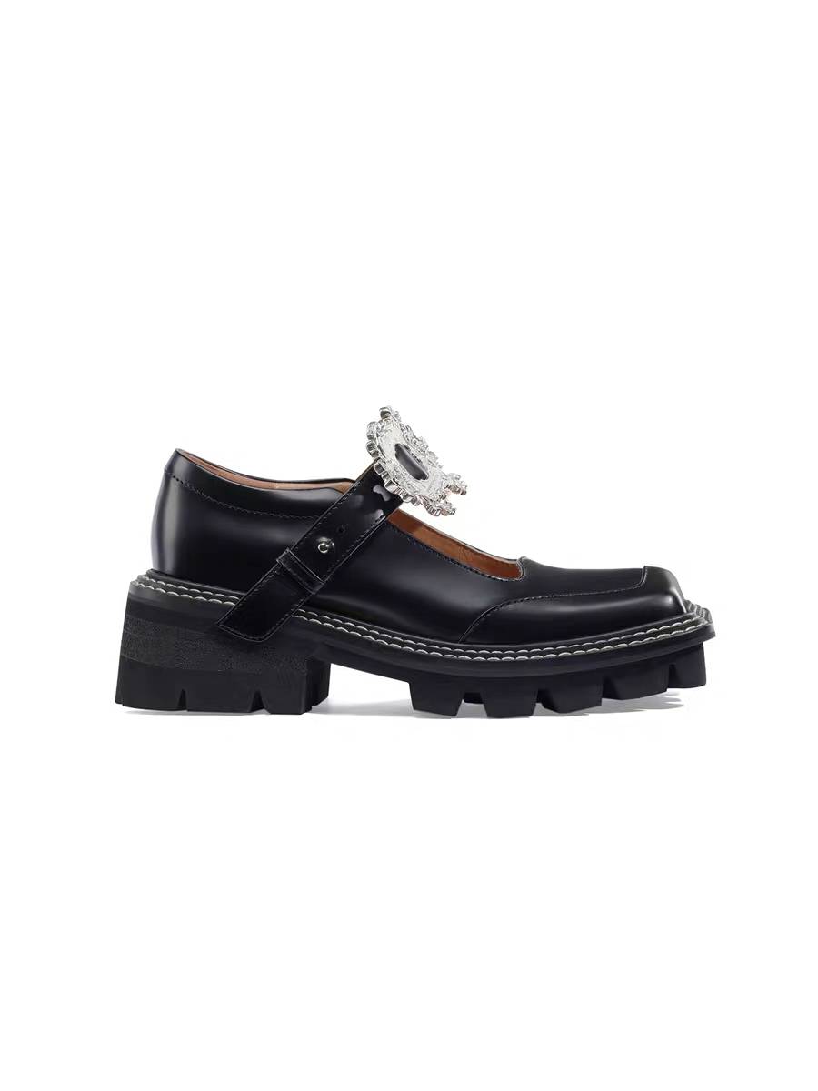ISS设计师女鞋 蝶翅方头小皮鞋 厚底粗跟复古巴洛克一字扣 玛丽珍