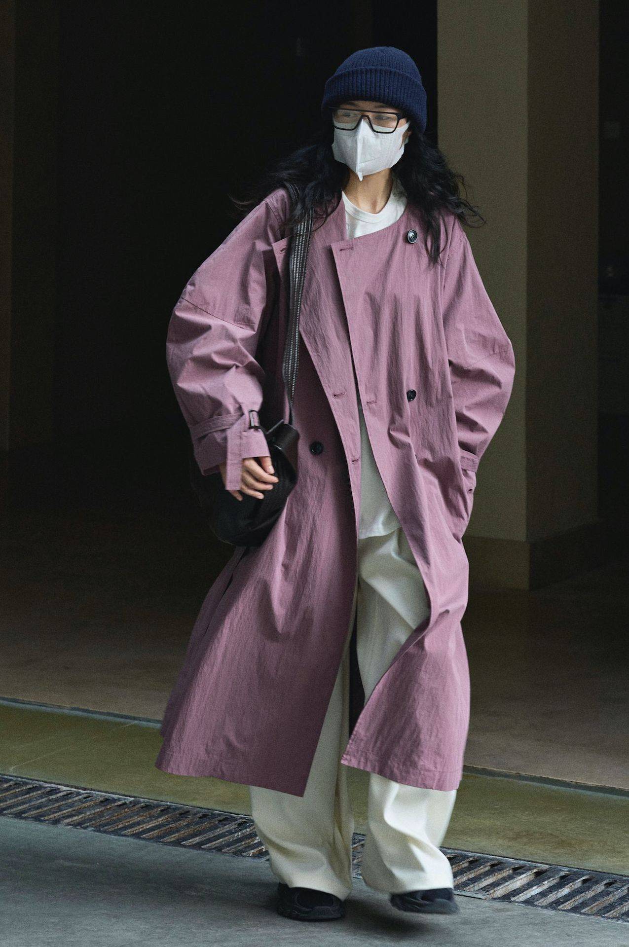 2022秋季新款日系复古风开叉圆领风衣廓形系腰宽松显瘦休闲长款外套女