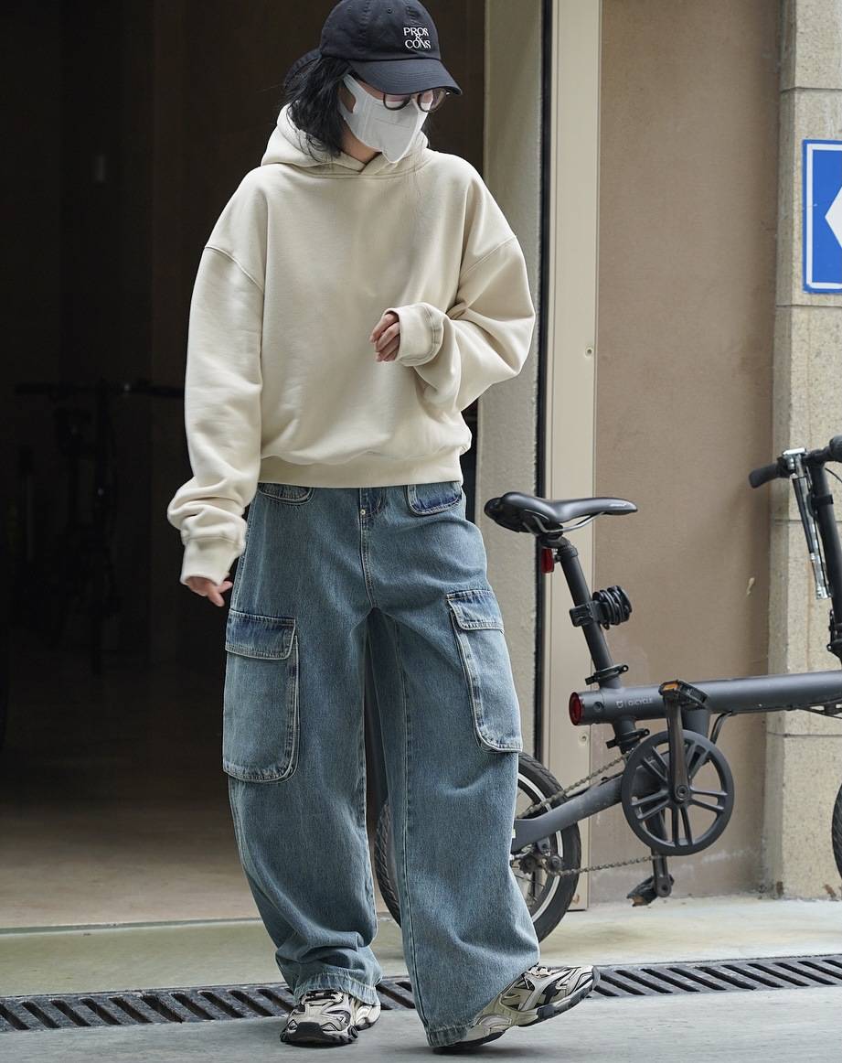 2022新款夏日白色穿搭 2022新款ins小众宽松高腰明线牛仔背带裤女