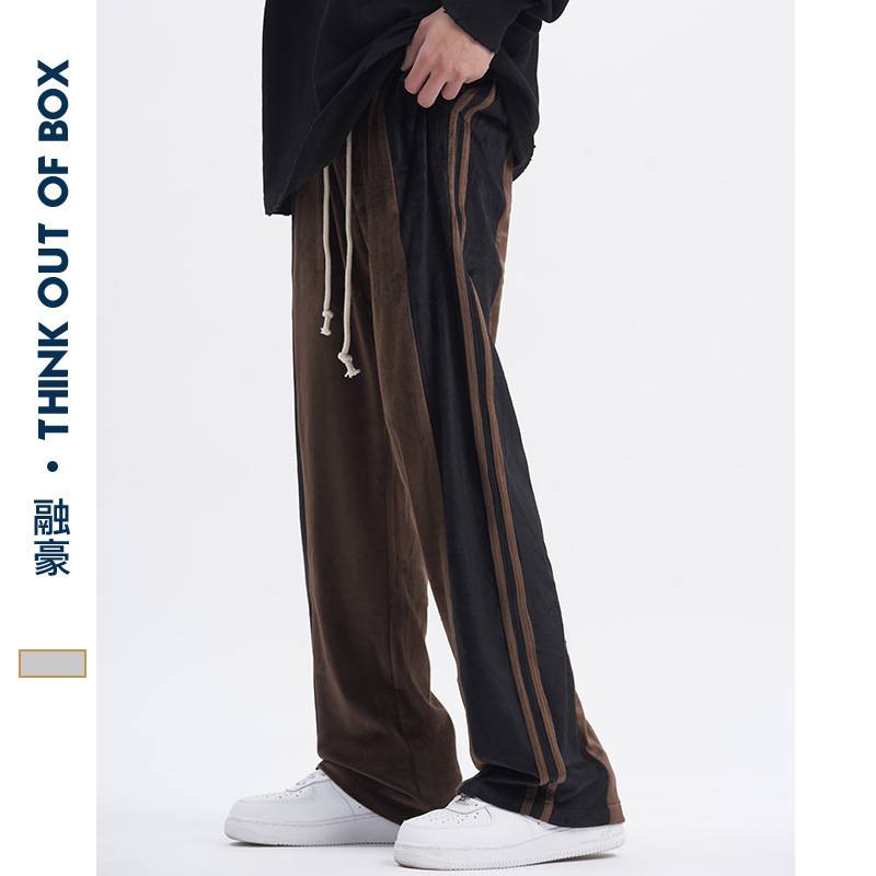 2022新款麂皮侧边条纹休闲长裤欧美时尚宽松运动裤男高街潮裤