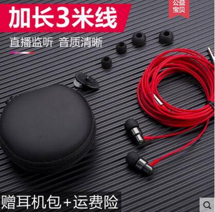 X30声卡直播专用监听耳机 超长3米入耳式有线耳机