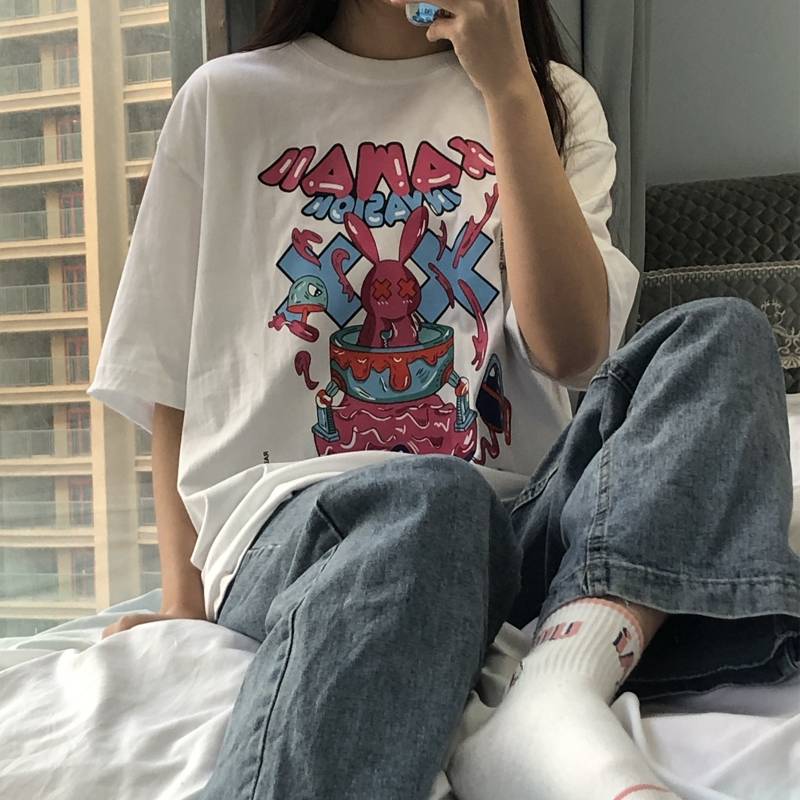 海浪自制2021春夏新款韩版BF风纯棉短袖T恤女学生