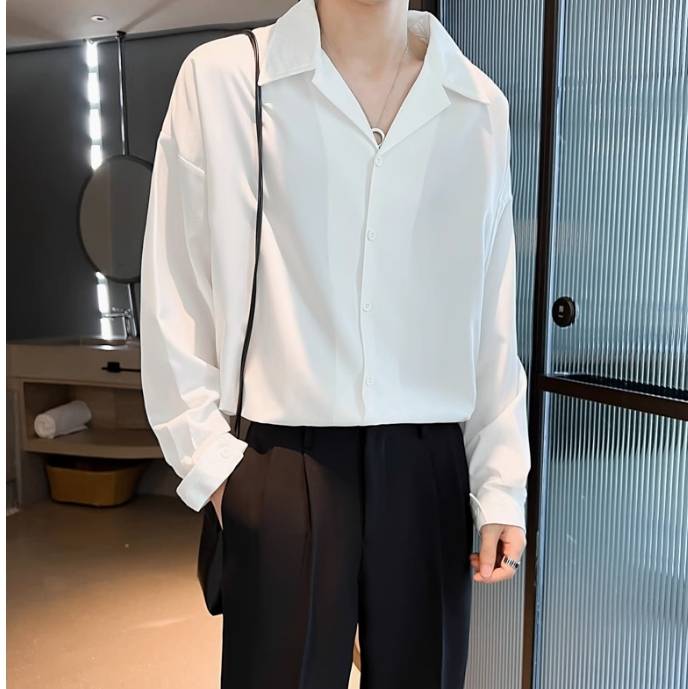 黑色衬衫男长袖帅气潮流春秋季薄款外套夹克休闲显瘦百搭