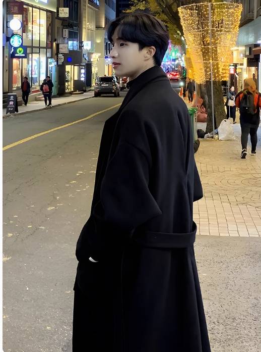 秋冬韩版毛呢大衣男中长款过膝宽松高级感潮流英伦风呢子风衣
