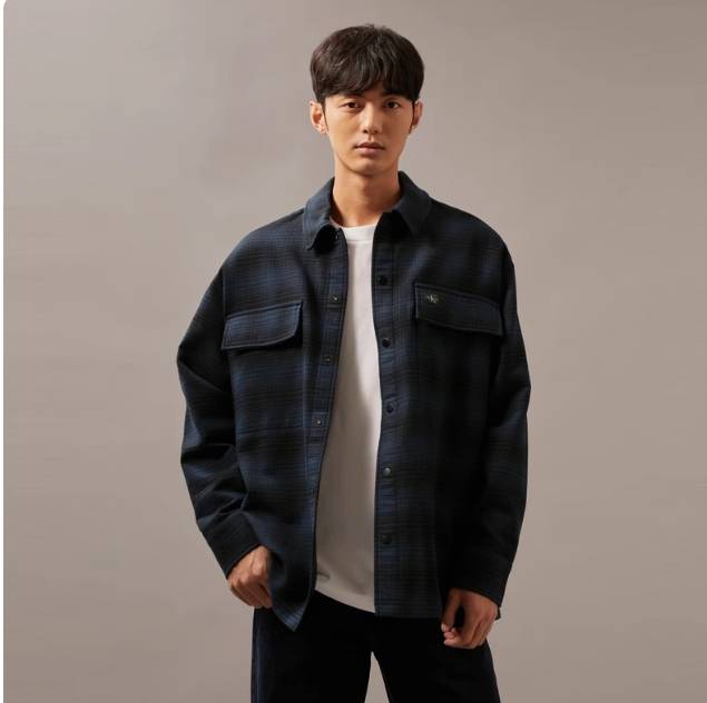 CK Jeans24秋冬男士复古宽松磨毛格子衬衫外套J326183