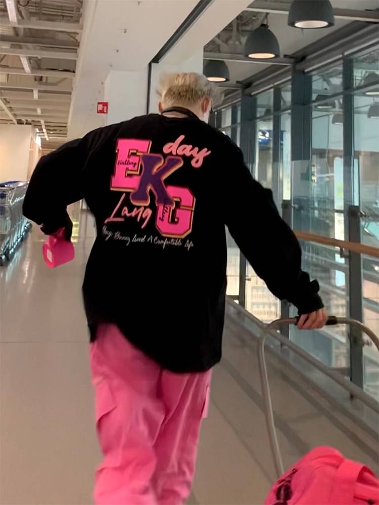 民族风复古条纹呢料卫衣男潮套头oversize宽松慵懒风韩版男生上衣