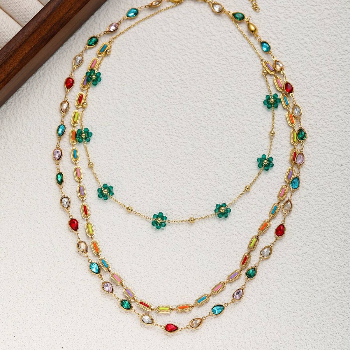 欧美高级项链复古彩色串珠小众天然石三层叠戴钛钢锁骨链 69.90 已售:0件