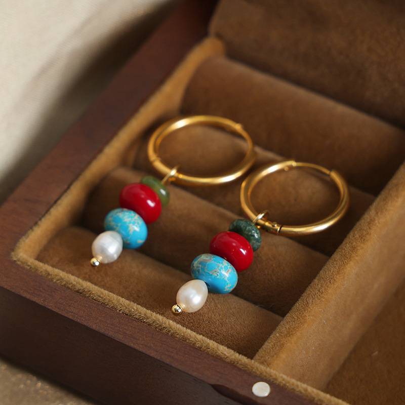 欧美新款时尚百搭高级感轻奢天然石算盘珠吊坠钛钢镀金耳环女饰 49.90 已售:0件