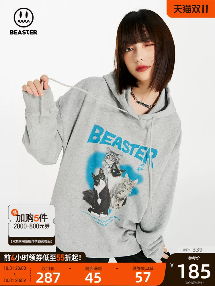 BEASTER小恶魔潮牌复古卫衣卡通图案宽松休闲ins秋季新款连帽上衣