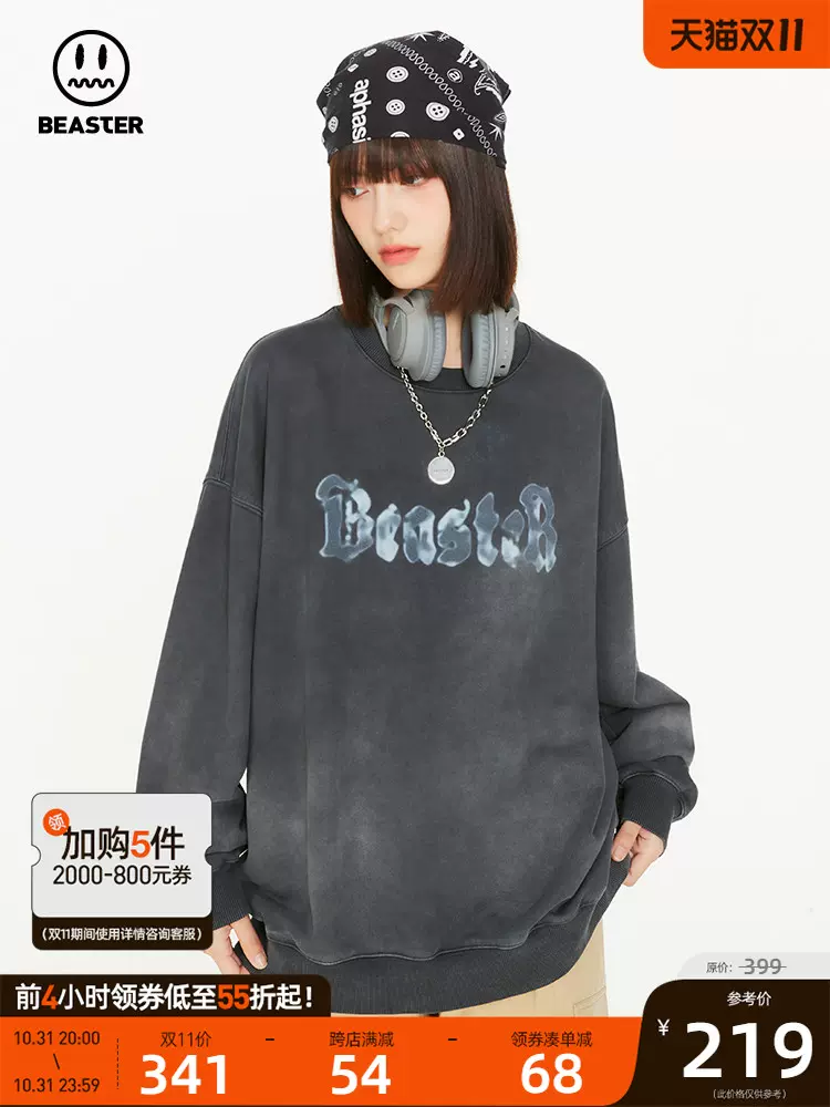 BEASTER中国说唱巅峰对决小恶魔时尚复古重磅卫衣圆领宽松上衣男
