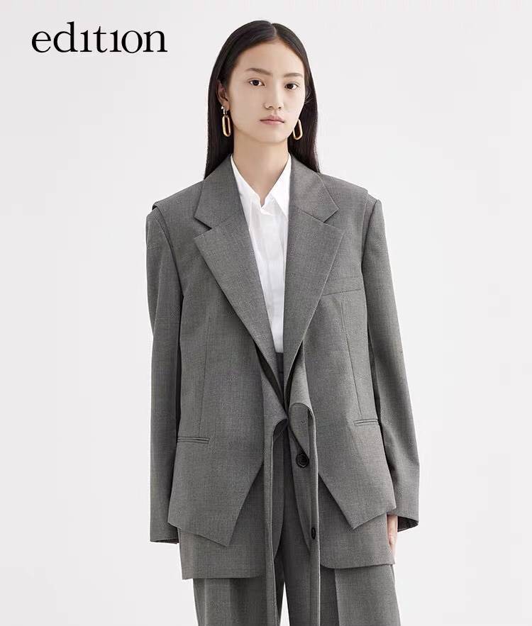 ZOJ手缝羊毛双面绒外套格子大衣女西装新款秋冬毛呢女装