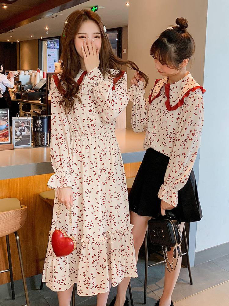 2019新款女装闺蜜装裙子女秋冬 法式复古裙超仙的少女波点连衣裙