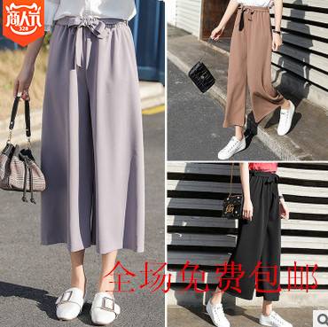 2019春夏季百搭宽松休闲直筒九分高腰潮阔腿裤