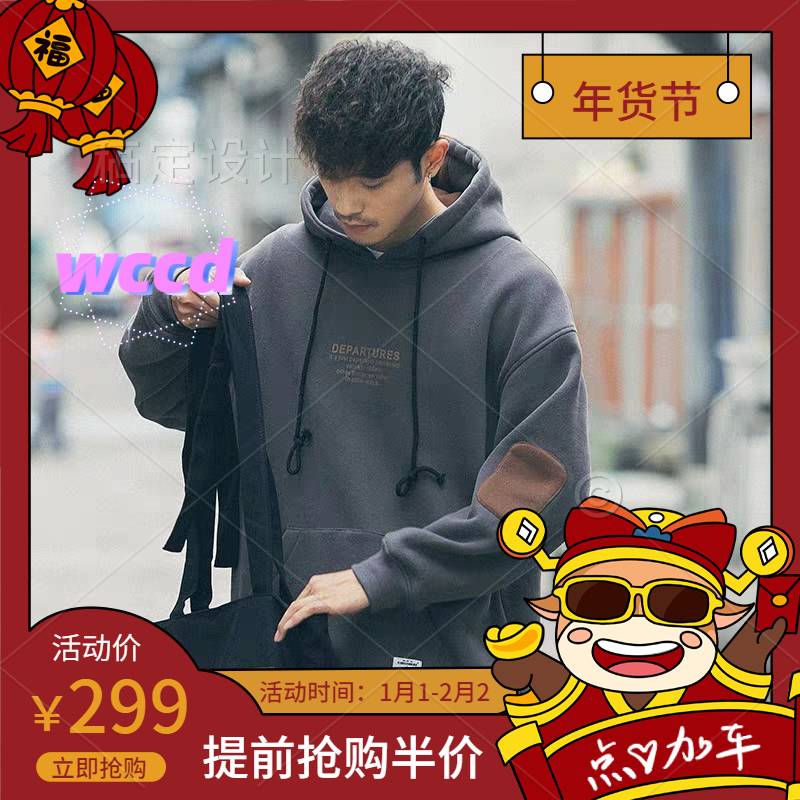 wccd卫衣男连帽ins潮牌2020新款港风秋冬季加绒加厚大码宽松情侣外套