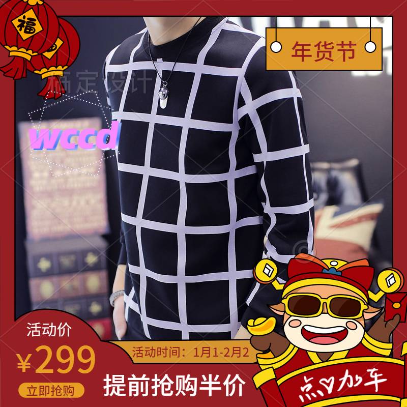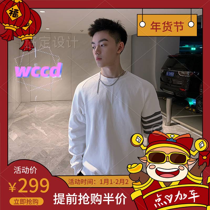 wccd2020秋冬新款tb华夫格套头卫衣男网红圆领百搭外套上衣ins潮情侣