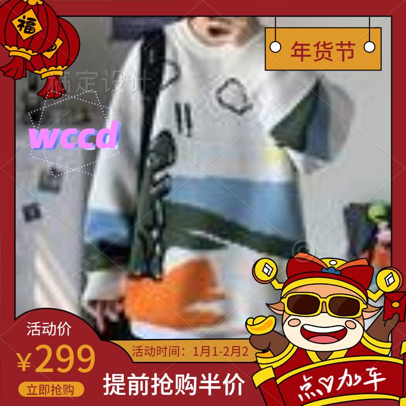 wccd加绒情侣卫衣男连帽韩版潮流帅气ins港风宽松圆领上衣服嘻哈外套