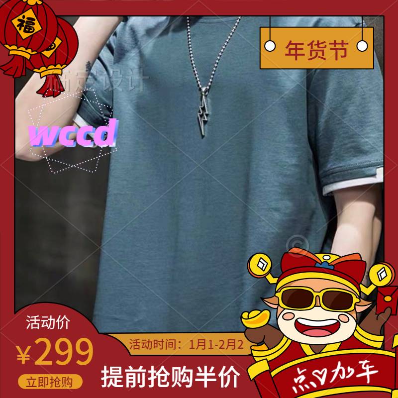 wccd新款男士短袖潮流潮牌宽松纯棉衣服夏季T恤男生装
