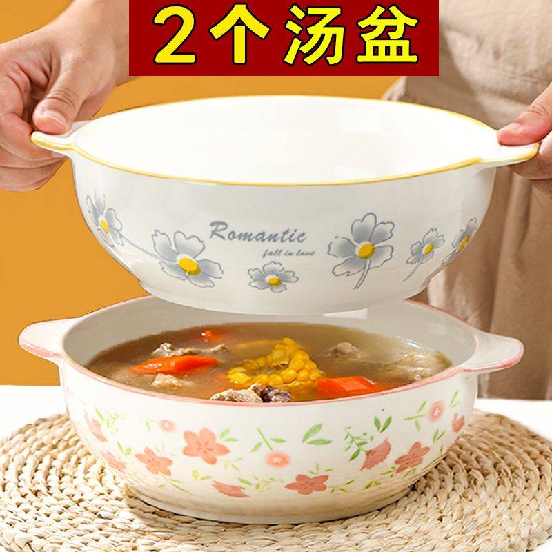 【爆卖中】碗家用大号双耳汤碗陶瓷大碗日式釉下彩简约排骨大汤碗