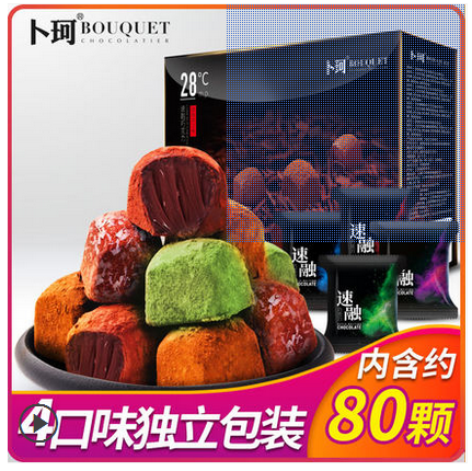 卜珂手工松露黑巧克力礼盒装零食送女友生日散装糖果(代可可脂)