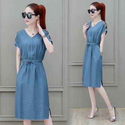 2018夏装新款女装休闲连衣裙女中长款宽松显瘦气质慵懒风韩版裙子