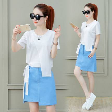 2018夏季新款女装时尚套装裙显瘦不规则T恤配半身裙两件套连衣裙