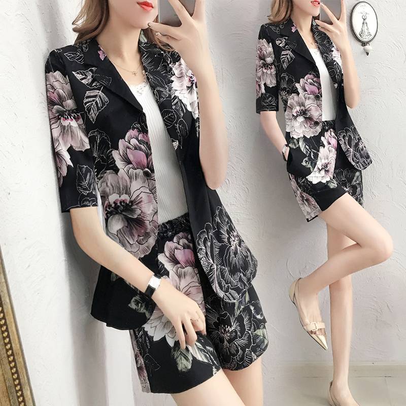 2018夏季新款复古港味西装套装女时髦上衣配短裤两件套 洋气显瘦