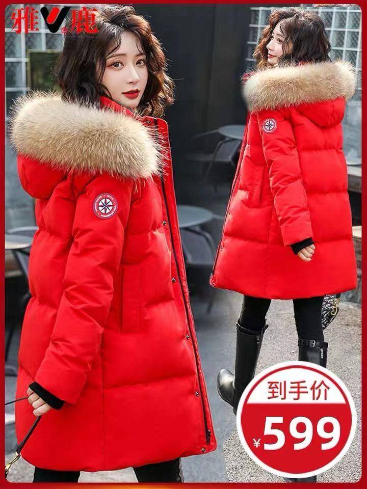 包邮2021新款时尚羽绒服白鸭绒中长款过膝超火