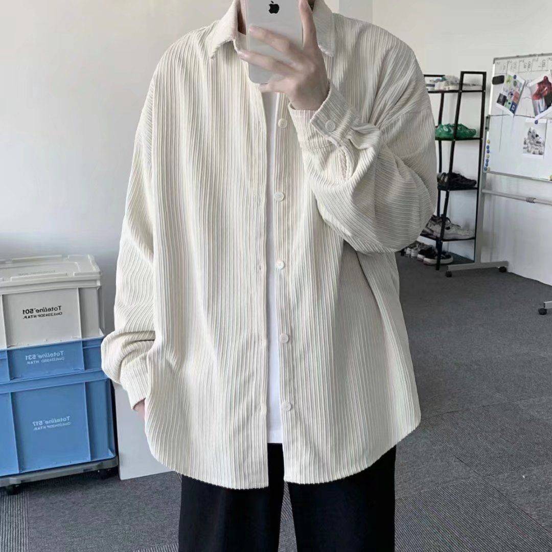 灯芯绒衬衫男宽松港风日系休闲外穿长袖衬衣外套韩版潮流百搭痞帅