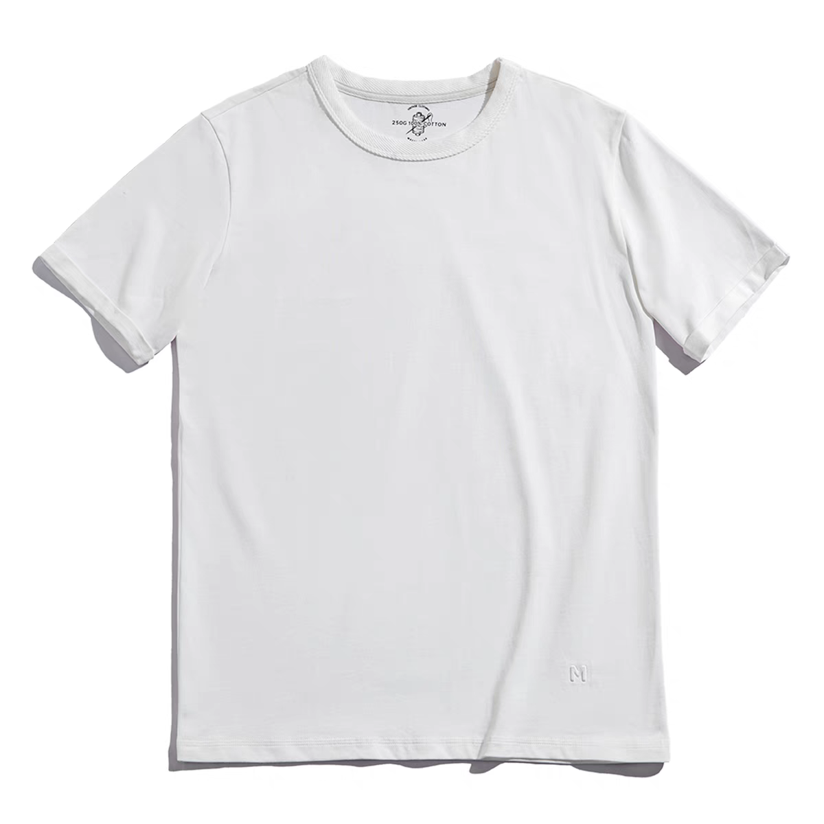 美式复古重磅白色二本针T恤薄款圆领内搭短袖打底衫男夏