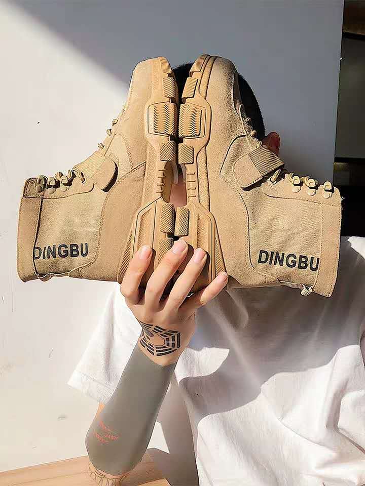 ins超火的高帮帆布鞋男韩版潮短靴运动鞋板鞋港风百搭男靴ulzzang