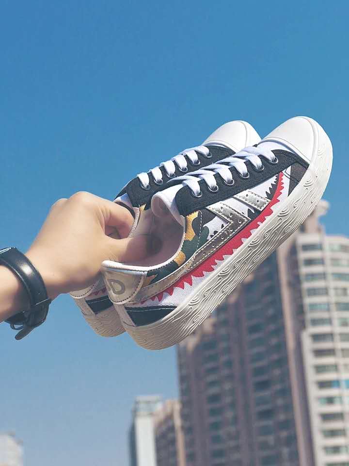 港风ins同款帆布鞋男韩版潮涂鸦板鞋学生百搭原宿风ulzzang鞋子男