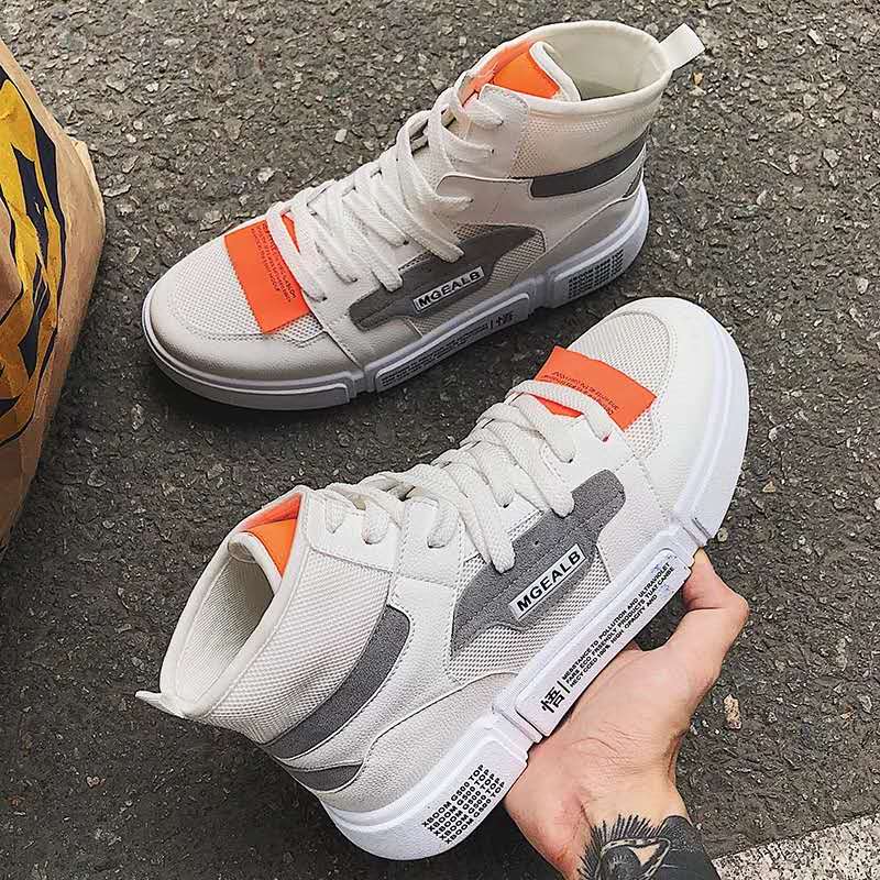 原宿风新款韩版ins超火的高帮帆布鞋男休闲港风百搭板鞋男鞋潮流