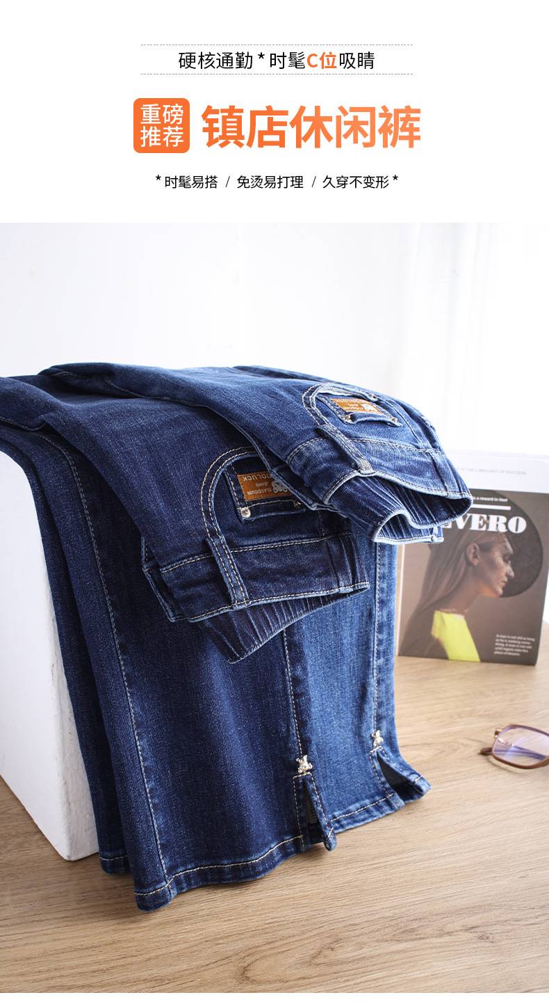 直筒牛仔裤女2022春夏松紧高腰显瘦蓝色水洗弹力棉大码休闲九分裤